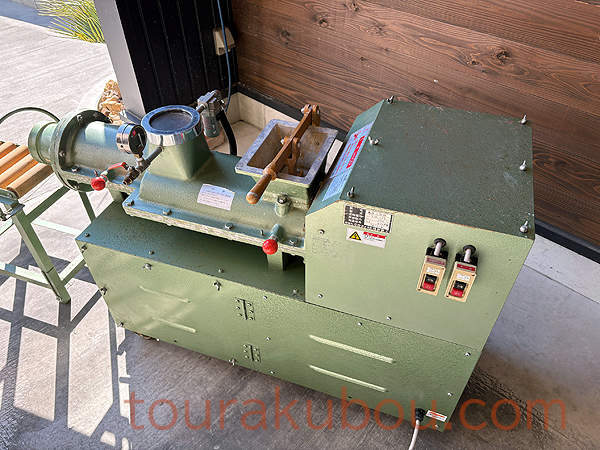 バキューム装置により、粘土中の気泡を抜き取りますので密度のある“こし”の強い土が抽出されます。