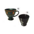 還元焼成では、つやのない真っ黒な色に焼きあがります。このいぶし黒釉にワンポイント加えることで面白い作品に仕上がります。
