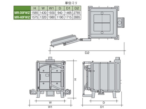 シンリュウの前扉式灯油窯MRシリーズ