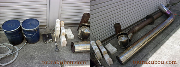 デジタル温度計×1.灯油タンク18L×2・煙突部品